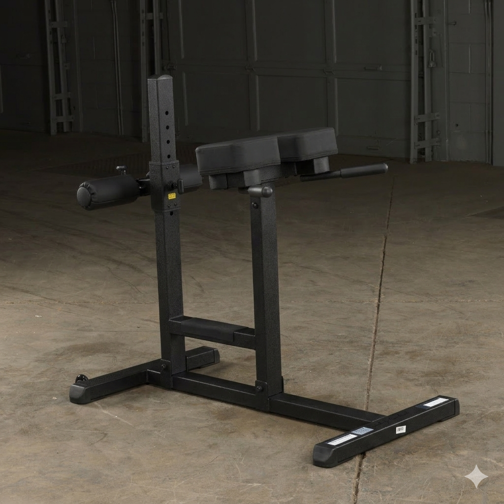 The Body-Solid Roman Chair specializes in developing the lower back, and also target the gluteal muscles, hamstrings and abdominals. Made from heavy-gauge steel, with thick, double-stitched DuraFirm pads and oversize 20cm foam rollers that adjust vertically and horizontally to fit all users.